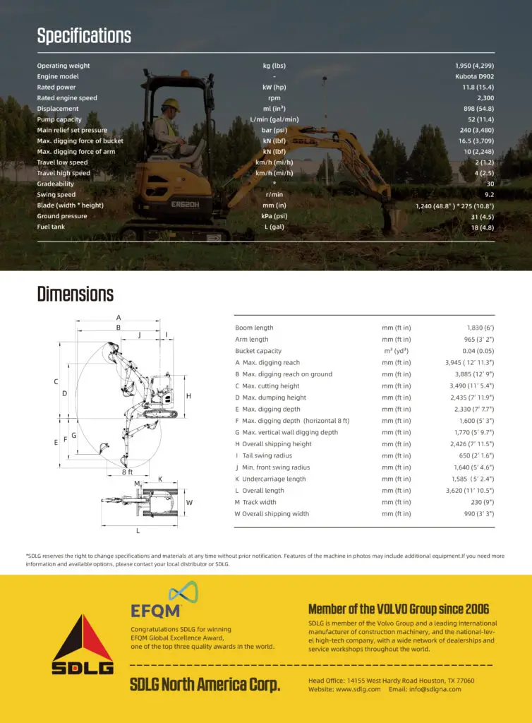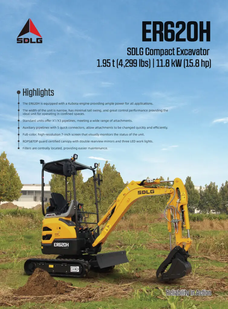 The ER620H is equipped with a Kubota engine providing ample power for all applications.